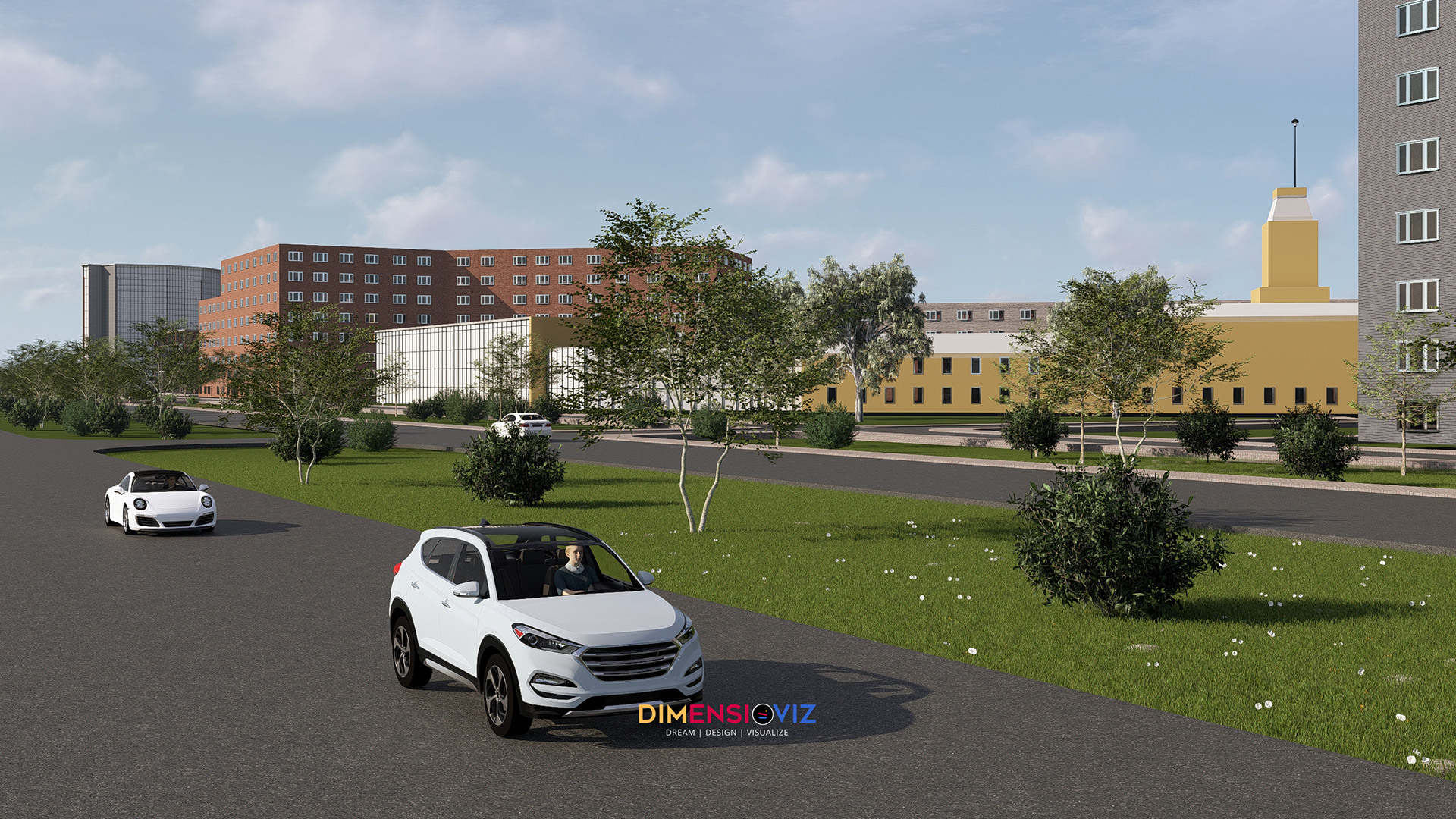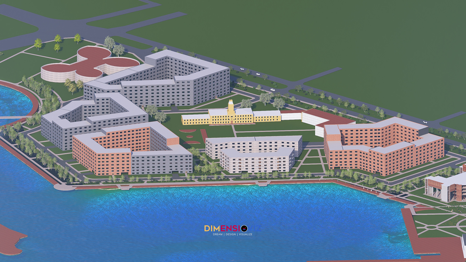 This project explores the transformation of a large institutional site in Russia into a visually engaging digital environment. I developed the complete masterplan in SketchUp, modeling every building, landscape element, and circulation path to capture the scale and rhythm of the site. In Lumion, I built the atmosphere of the project — defining lighting, materials, vegetation, and water elements to create a cohesive mood. The goal was to present not only the architecture but the feeling of the place: its openness, movement, and connection to the surrounding landscape. Final color grading and presentation work in Photoshop helped elevate the visual story, creating a clean, professional narrative that communicates the potential of the development clearly and effectively. This project reflects my approach to large-scale 3D visualization: blending technical precision with a strong sense of design and environment.
