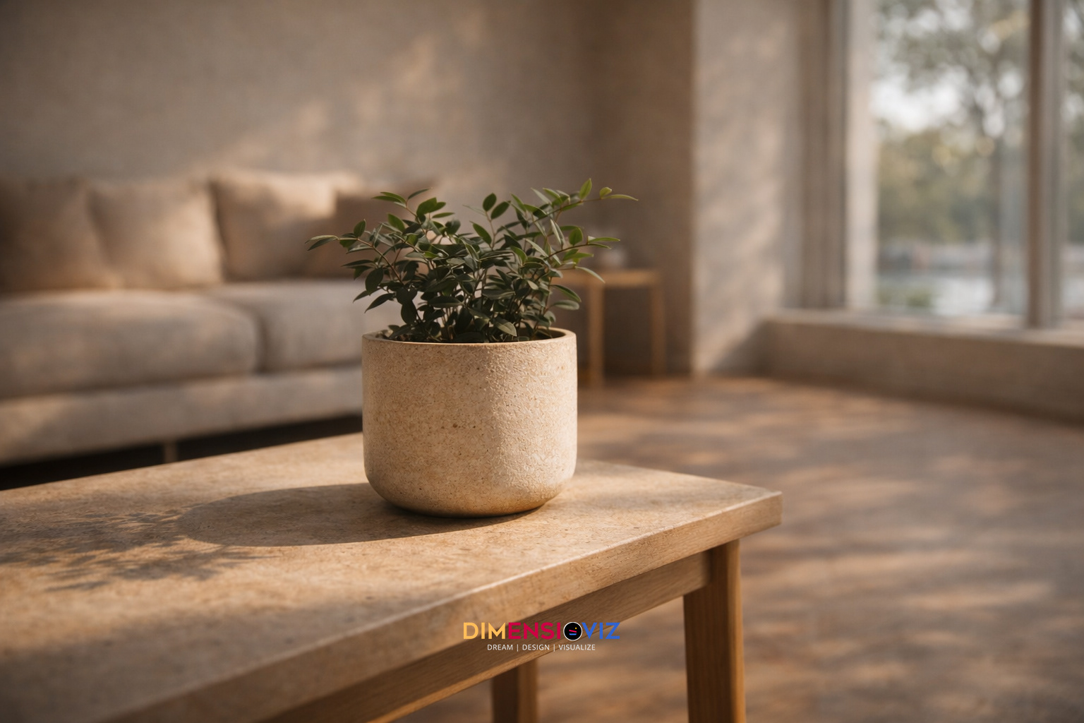 Biophilic Living Room Interior Visualization